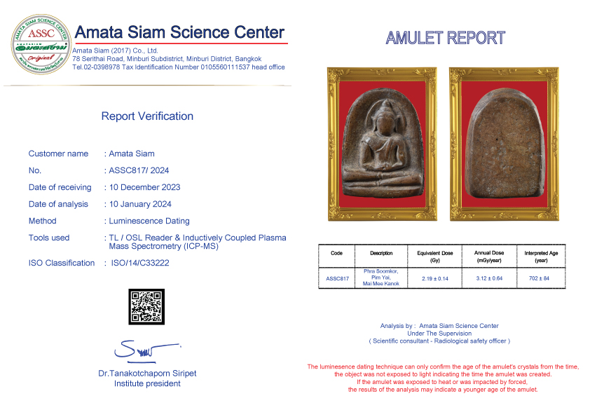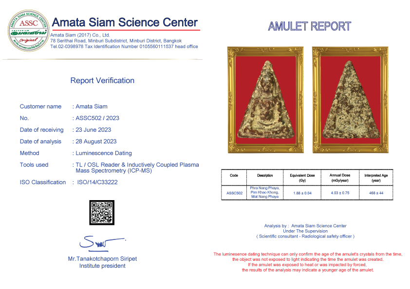 The Phra Nang Phaya, known as the “Queen of Amulets” from the Ayutthaya period, is traditionally authenticated by visual inspection. However, modern scientific methods provide undeniable proof of its age and material composition: