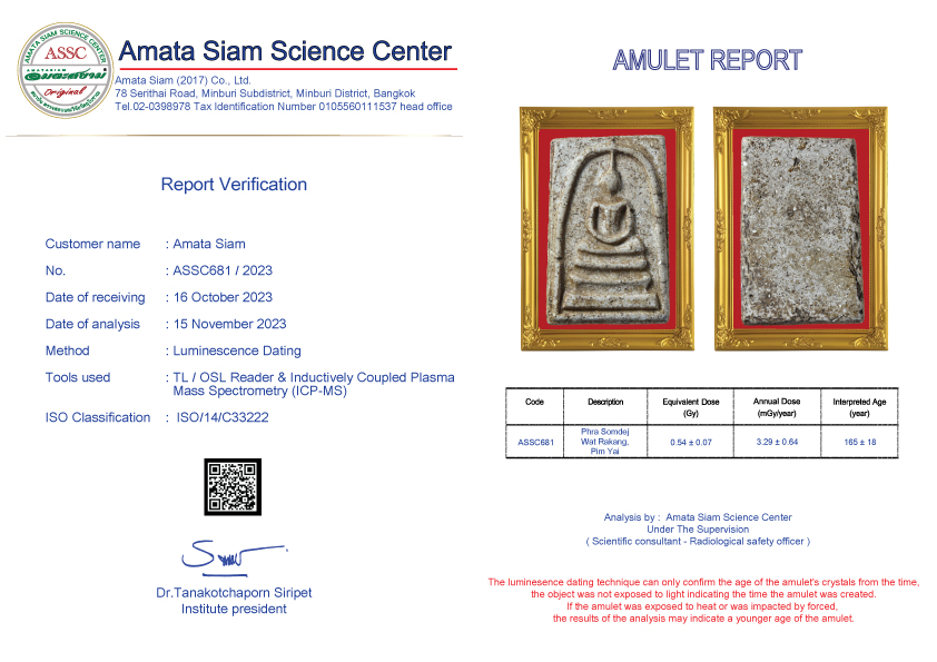 The scientific authentication of Phra Somdej Wat Rakang represents a shift from subjective “eye-judging” to empirical data. Using Optically Stimulated Luminescence (OSL), scientists can determine the last time the materials were exposed to intense light or heat. Since Phra Somdej is a lime-based amulet (made from crushed sea shells) that did not undergo high-heat firing like clay amulets, OSL is used to analyze the sedimentation age or the “re-crystallization” period of the calcium carbonate since it was molded approximately 150–160 years ago. This effectively distinguishes authentic 19th-century pieces from modern chemical-pressed imitations.